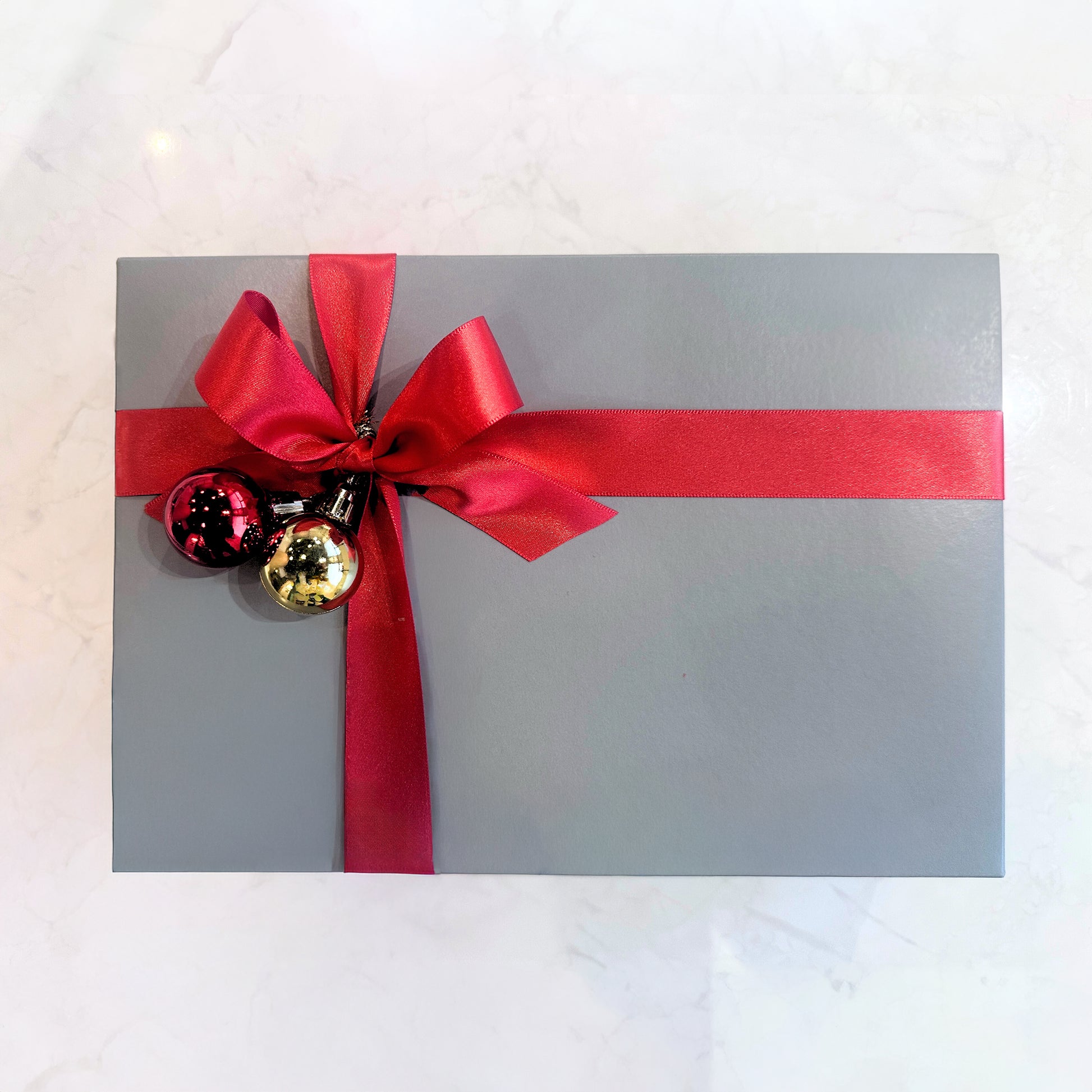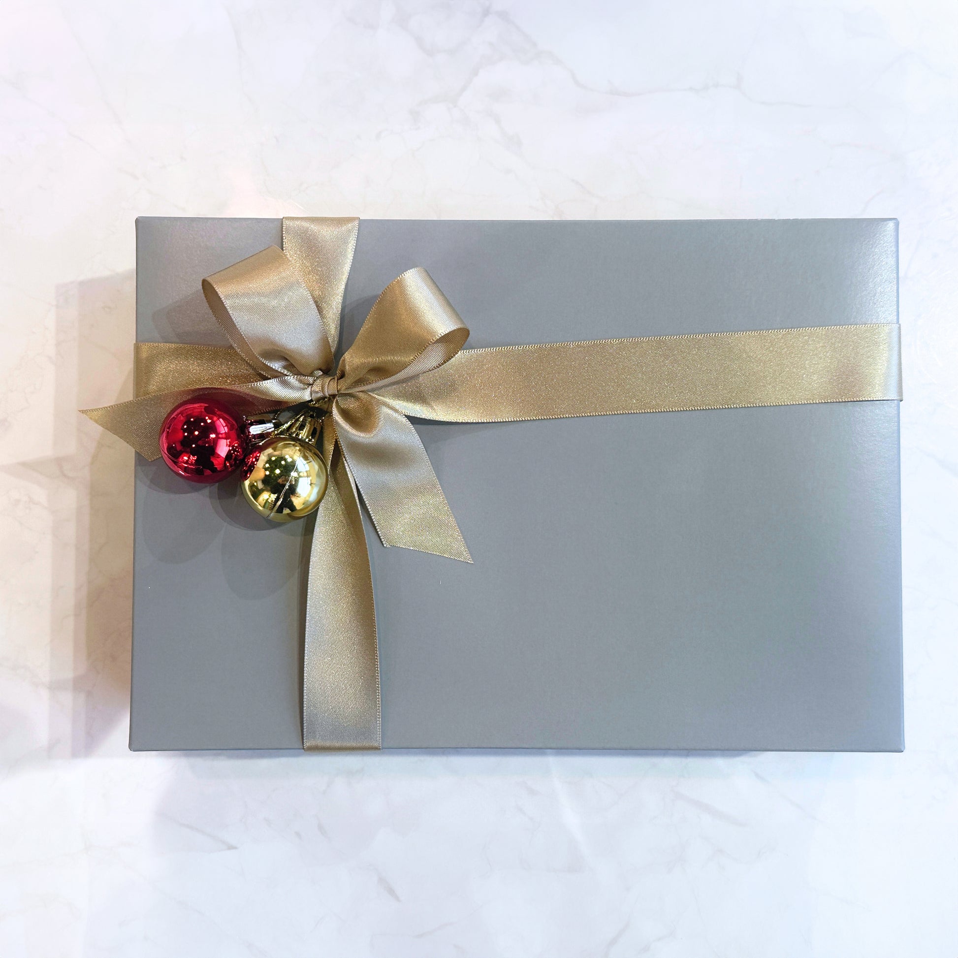 箱にはクリスマスらしいオーナメント付きのリボンを巻いてクリスマスプレゼントにぴったりの見た目の商品となっています。