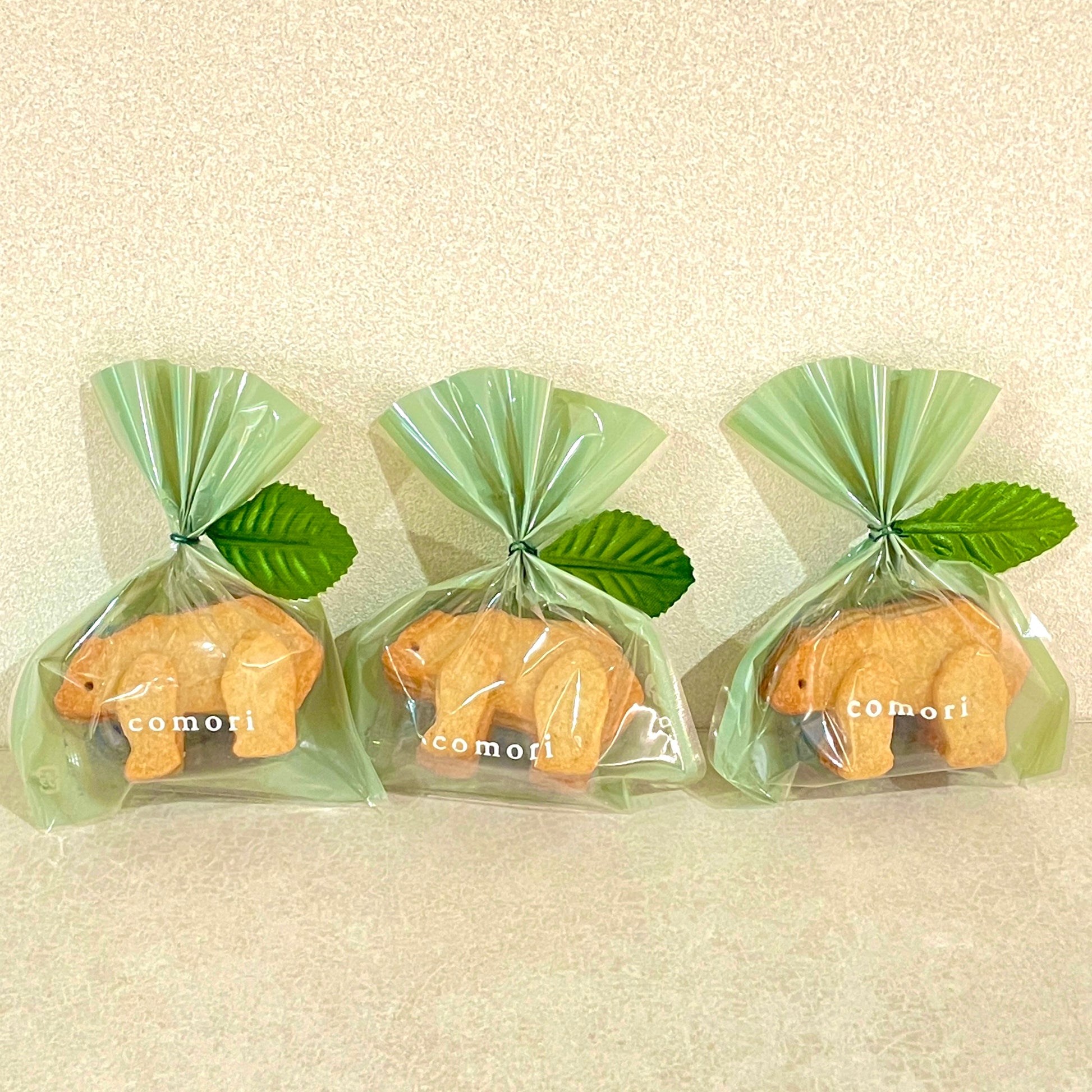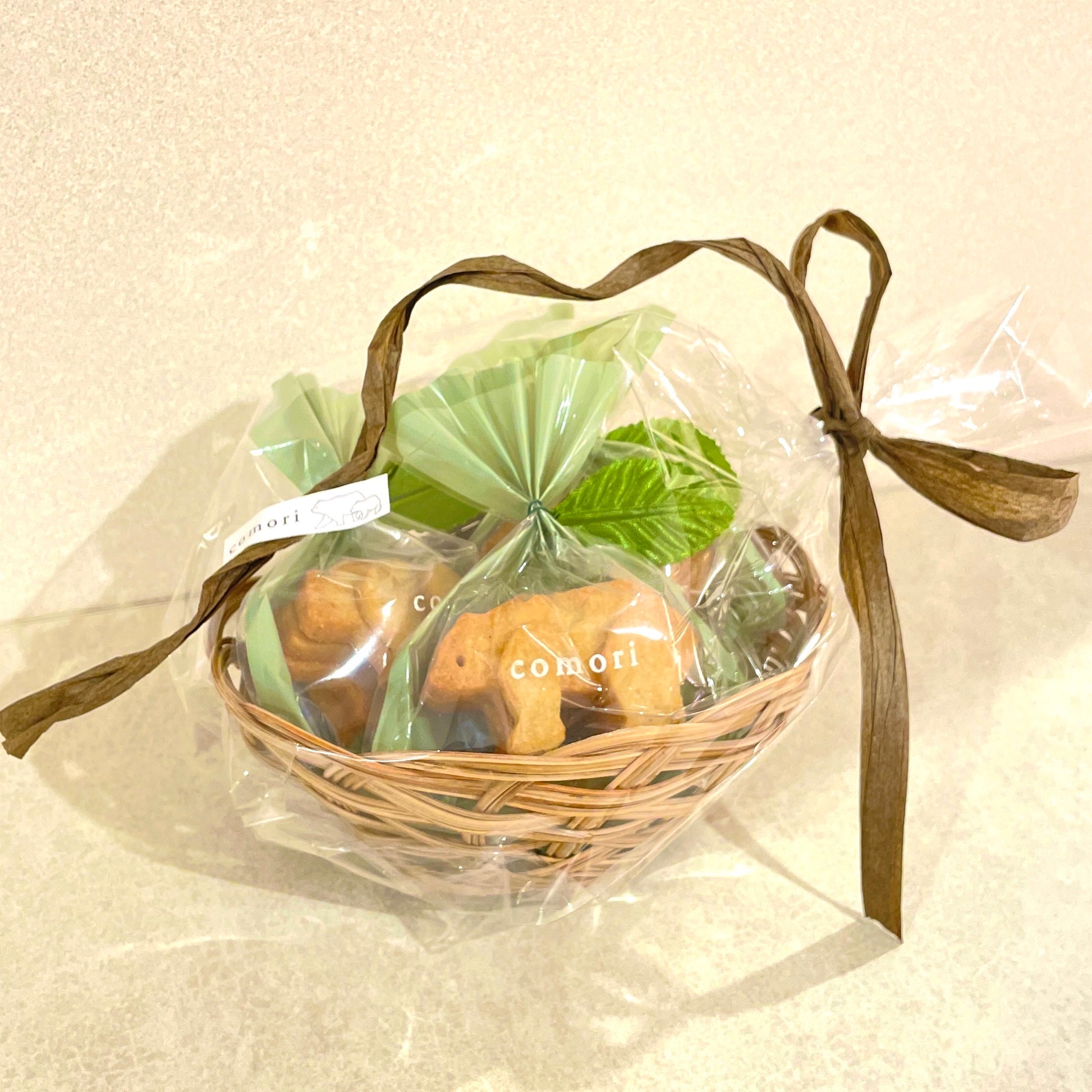白胡麻を使用したサクほろの立体こぐまクッキーの袋詰め3個をバスケットに入れて可愛くラッピングしました🐻